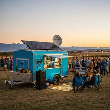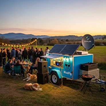 A single Bluepig trailer can provide enough energy to power cooking, lights, and sound for a large gathering for a whole weekend. Unlike diesel generators, it's clean, green, and completely silent.